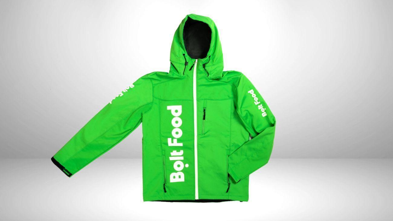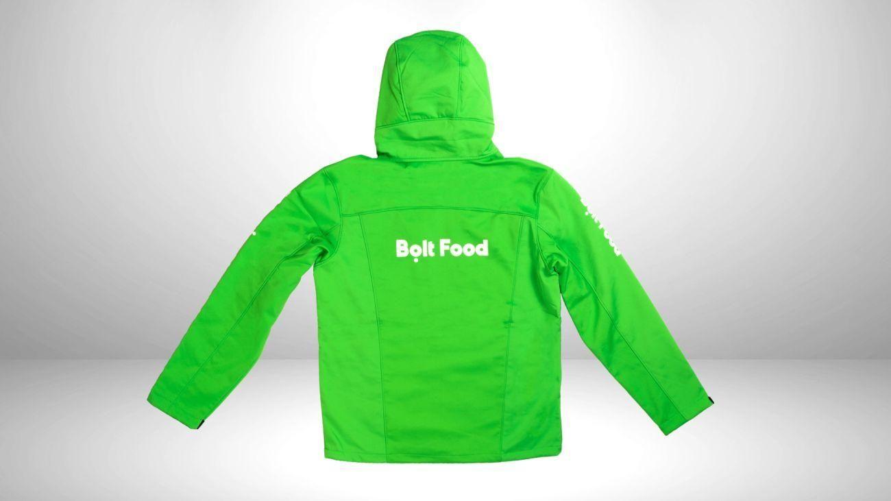 - Bolt Food logo printed on the front, sleeves, and back - Front zip opening for easy access - Chest pocket and zipper-opening pockets for storage